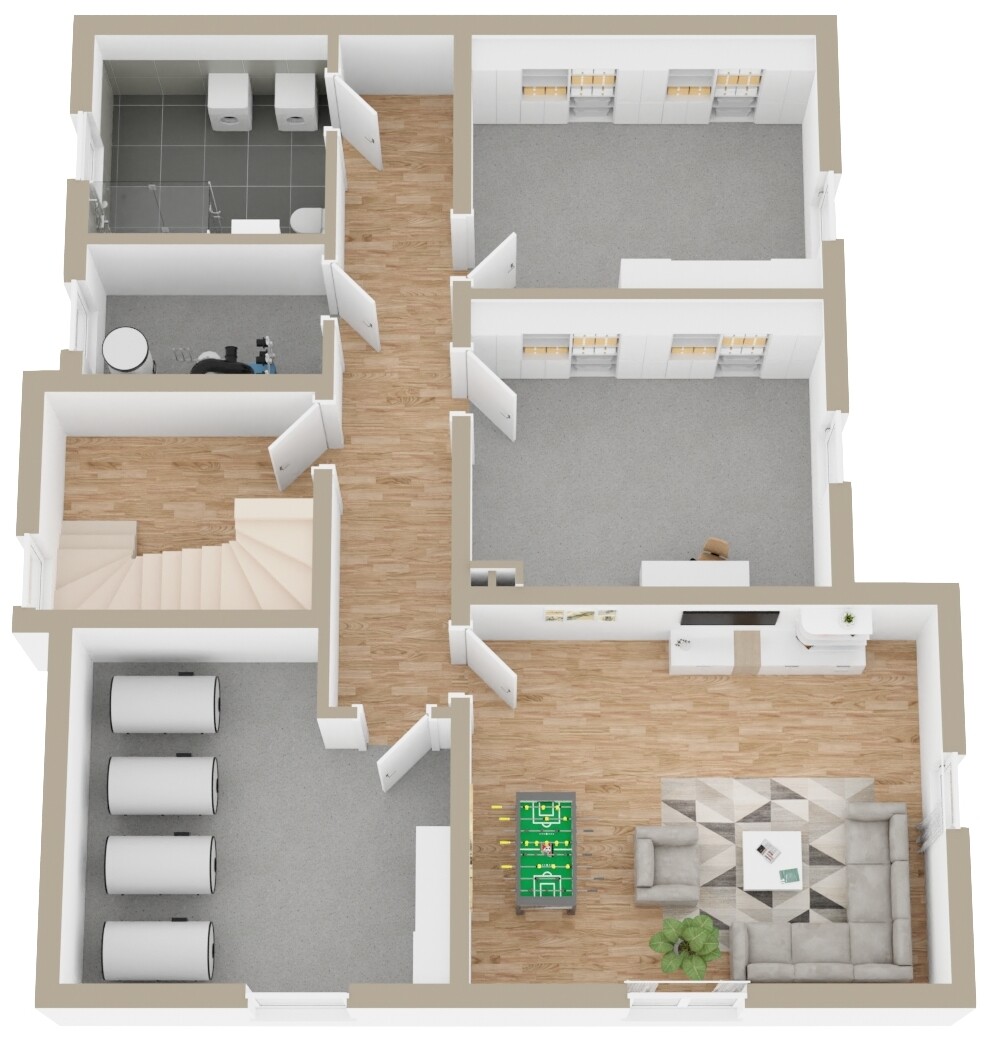 Das Haus ist unterkellert und bietet dort neben Lagerflächen ein Badezimmer sowie einen Hobbyraum. Eine geräumige Doppelgarage mit angrenzender Werkstatt und zusätzlichem Stauraum unter dem Dach rundet das Platzangebot ab.