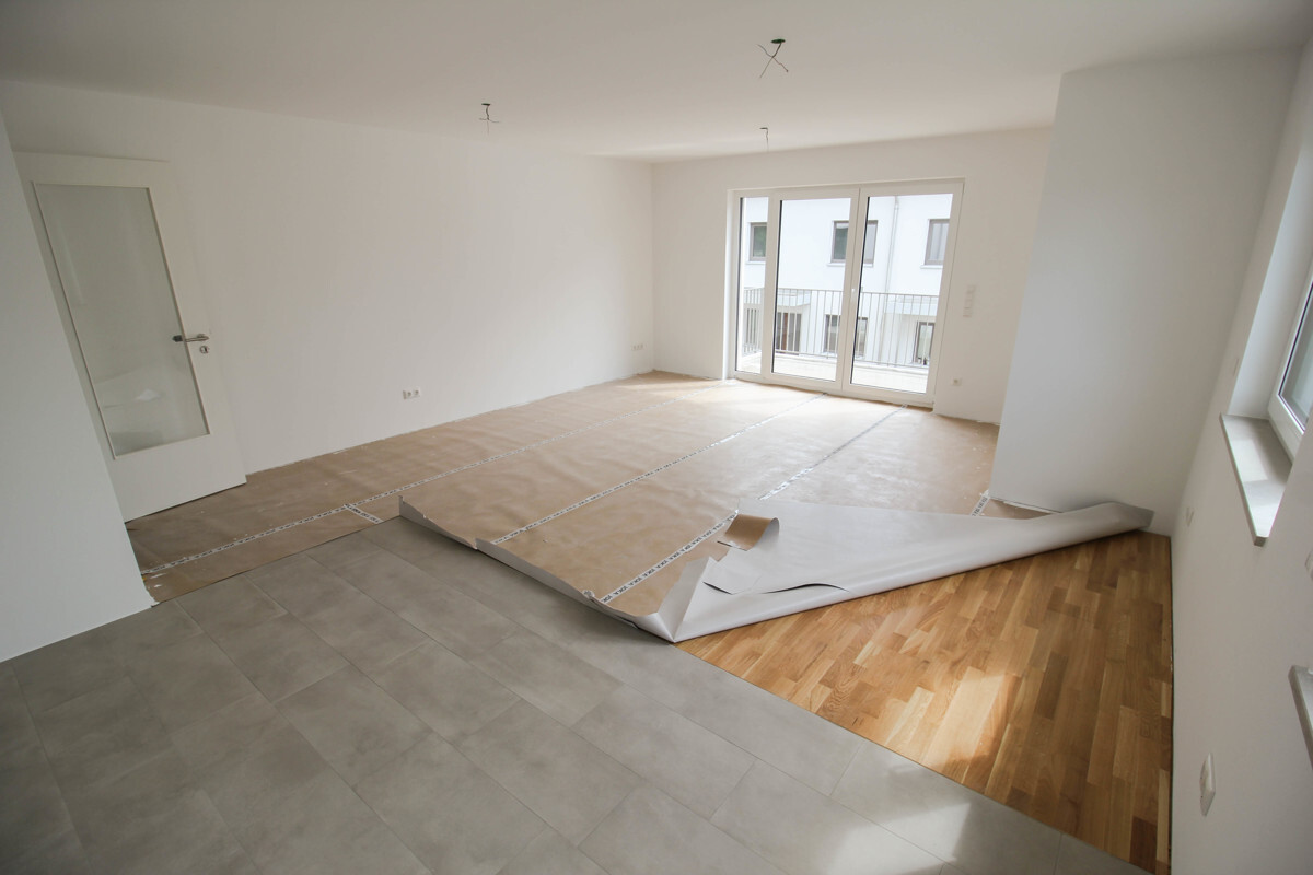 Der helle Wohn- und Essbereich bildet das Herzstück der Wohnung. Von hier aus gelangen Sie auf den ca. 8 m² großen Balkon mit Süd-West-Ausrichtung – ein schöner Platz für entspannte Momente im Freien. Die offene Küche wird mit einer modernen Einbauküche samt aller Elektrogeräte ausgestattet – ideal für einen sofortigen Einzug.