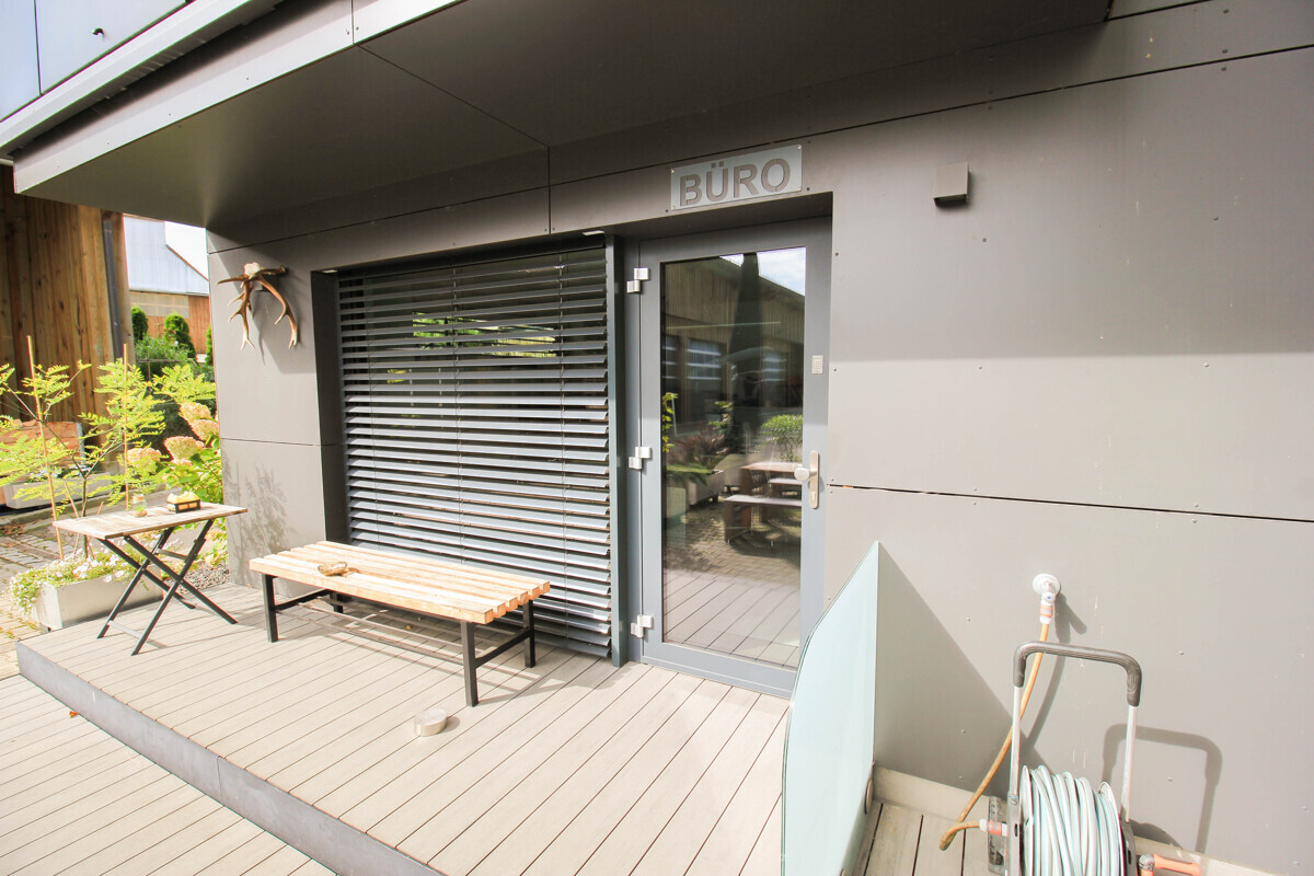 Außenbereich mit Sitzgelegenheiten (Pausen/Besprechung)
