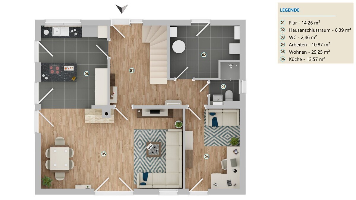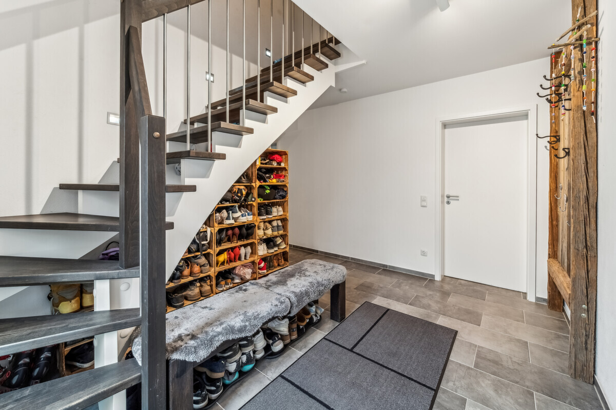 Auch technisch ist das Haus bestens ausgestattet: Homeway-Dosen mit RJ45/CAT7 in allen Wohnräumen ermöglichen schnelle Internetverbindungen – ideal für Homeoffice und moderne Mediennutzung. Eine Wasserenthärtungsanlage sorgt im gesamten Haus für angenehm weiches Wasser.