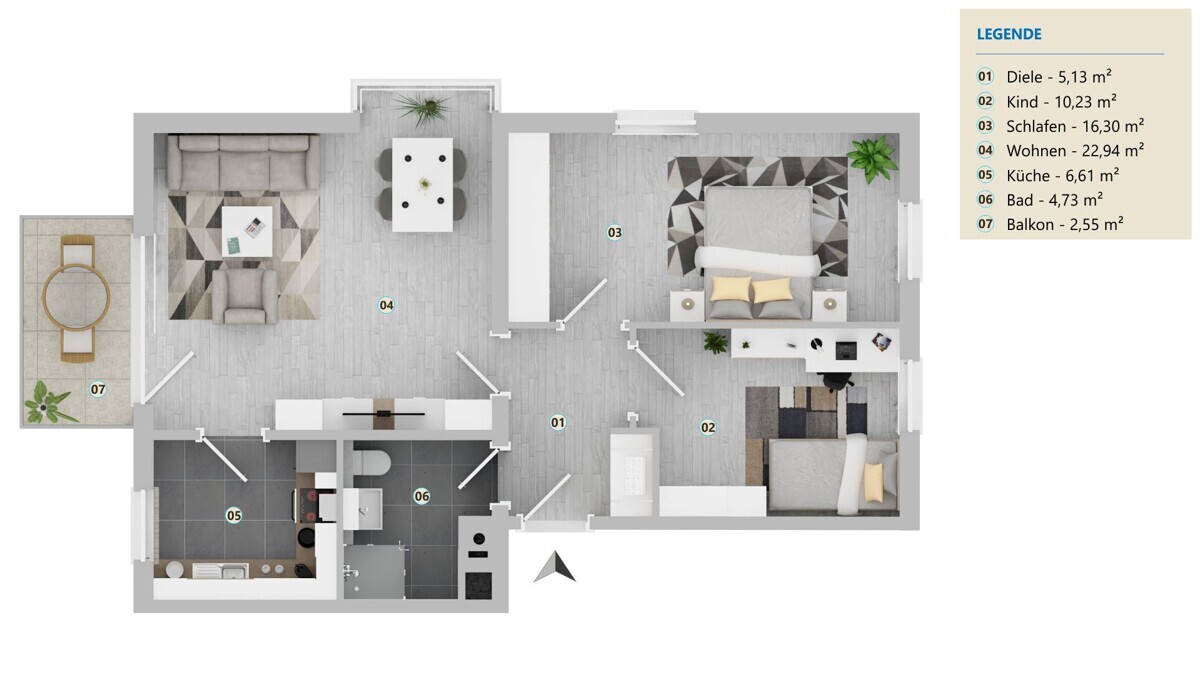 Die Wohnung befindet sich in einem sehr gepflegten Zustand und ist derzeit vermietet – ideal auch als attraktive Kapitalanlage in begehrter Lage von Erding.