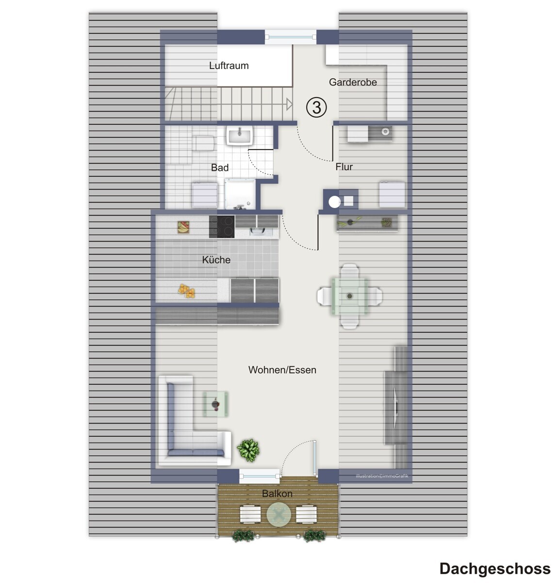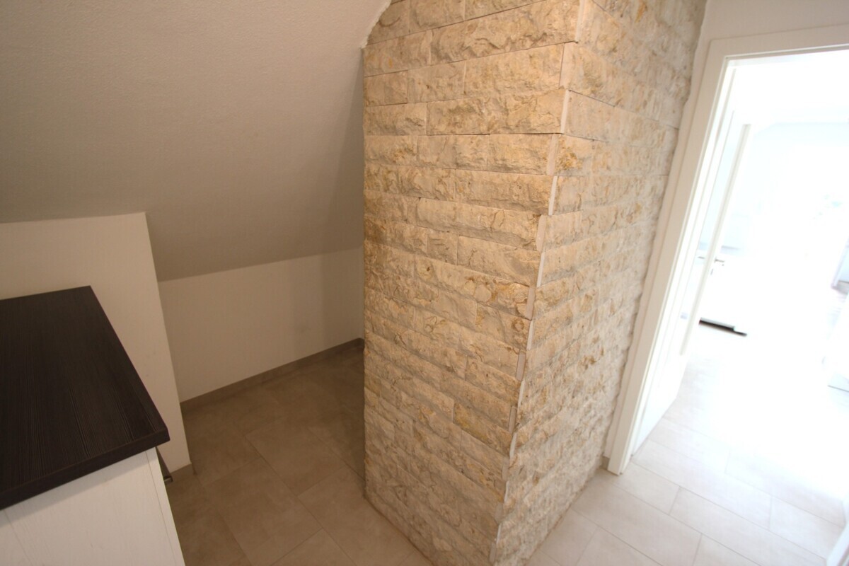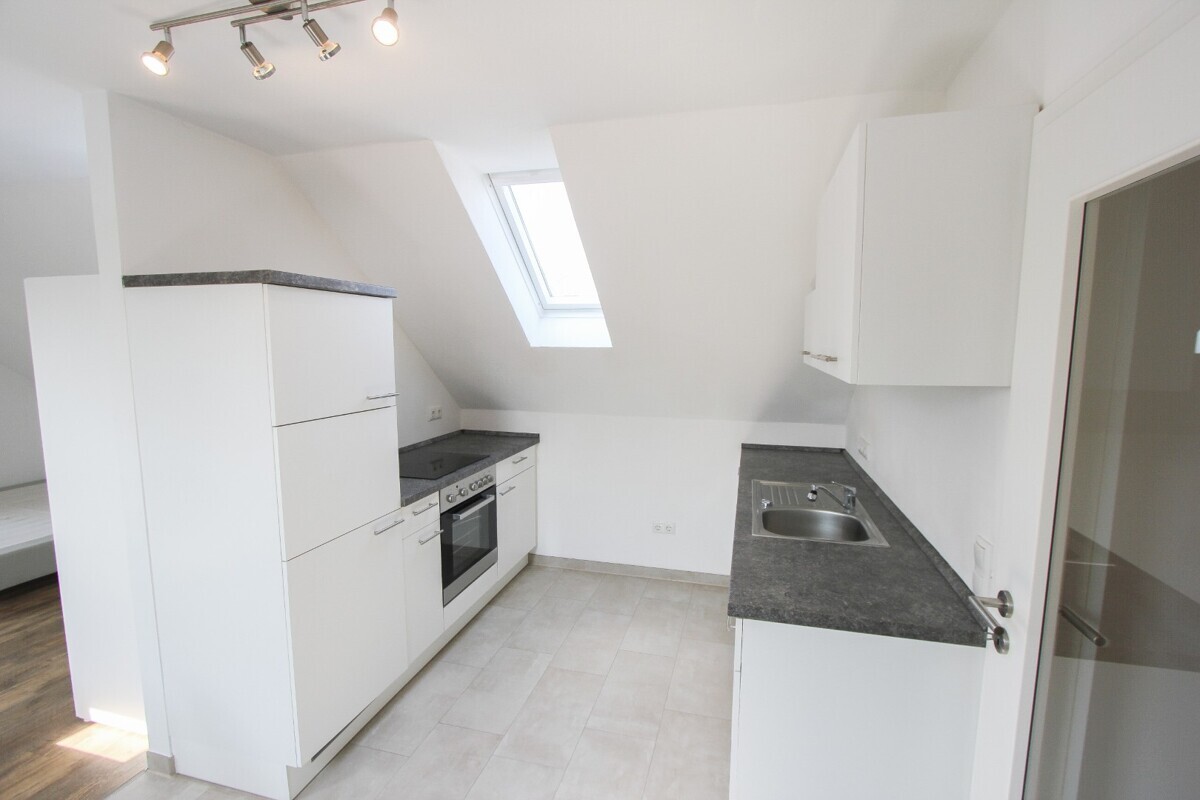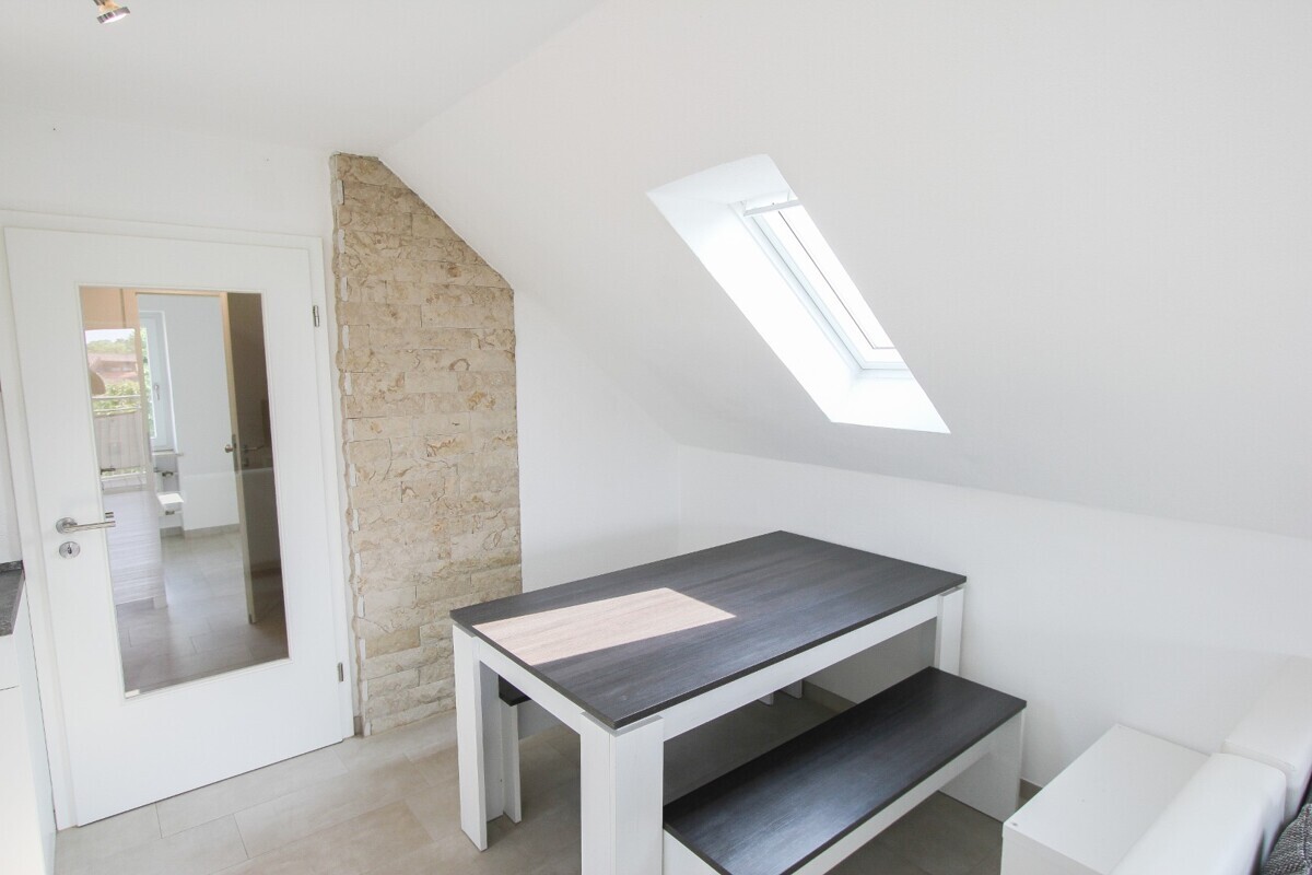 Dieses attraktive 1-Zimmer-Appartement befindet sich im Dachgeschoss eines 3-Parteienhauses. Der Eingangsbereich bietet genügend Platz für eine Garderobe. Das Badezimmer ist mit Dusche und Waschmaschinenanschluss ausgestattet. Der Wohn- und Schlafbereich bildet den Mittelpunkt der Wohnung und wird durch eine angrenzende Einbauküche ergänzt. Der sonnige Balkon ist direkt vom Wohnbereich aus zugänglich. Zur Wohnung gehört ein separater Außenstellplatz, der in der Warmmiete enthalten ist.