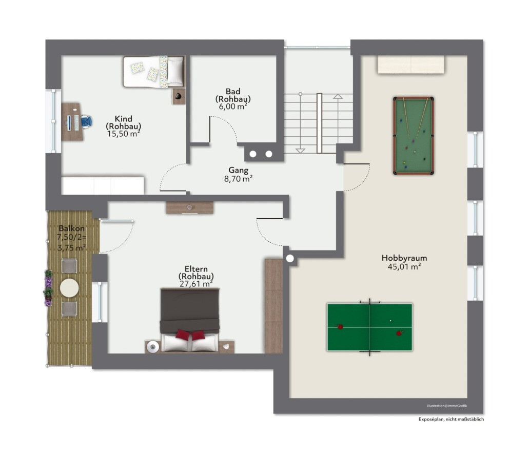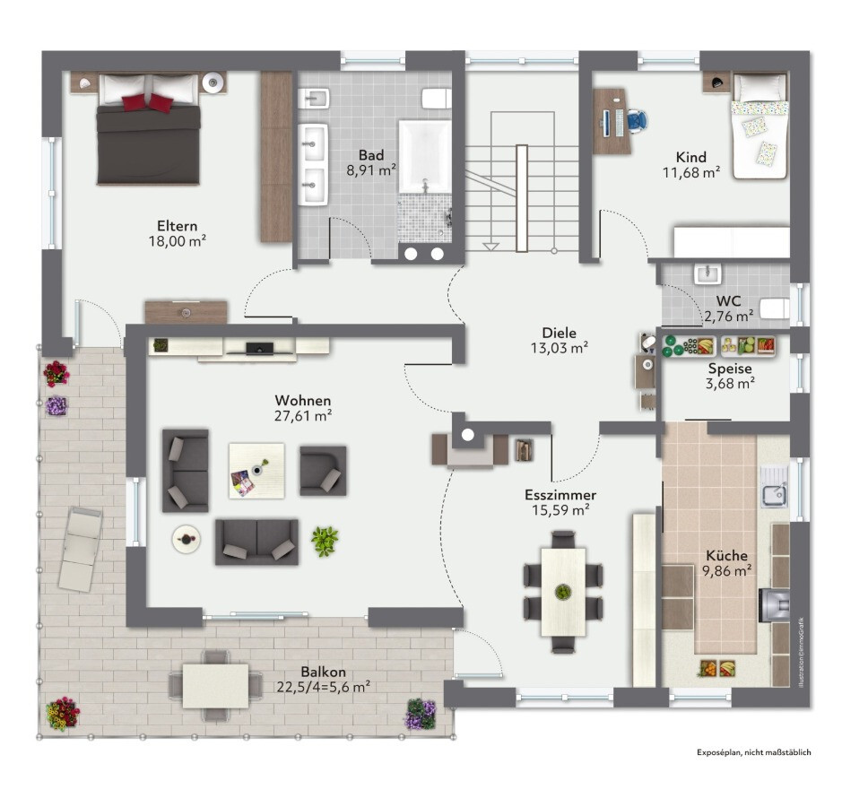 Eine besondere Möglichkeit zur individuellen Gestaltung bietet das Dachgeschoss mit seiner Ausbaureserve, die es Ihnen ermöglicht, die Wohnfläche um bis zu 65 m² zu erweitern und Ihre persönlichen Wohnvisionen zu realisieren.