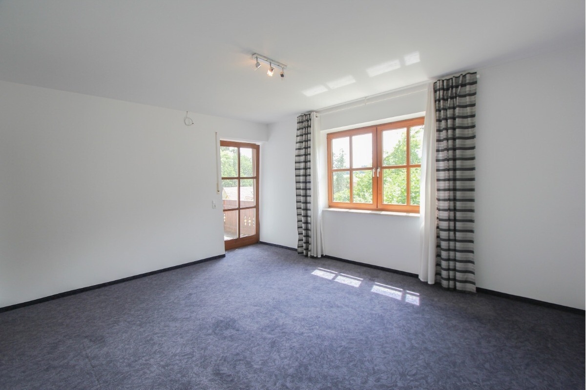 Vom geräumigen Balkon aus genießen Sie einen atemberaubenden Ausblick auf das weitläufige, 899 m² große Grundstück und die umgebende, malerische Landschaft.