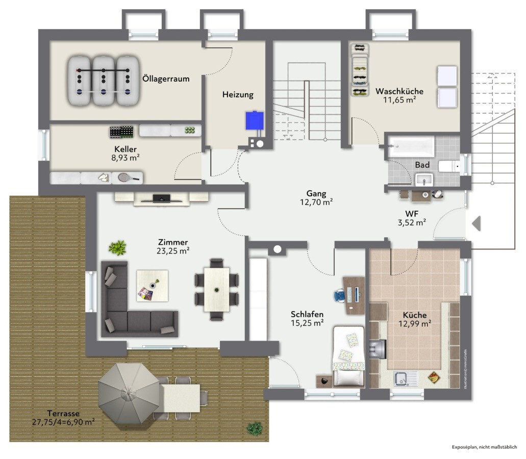 Das Herzstück dieser Immobilie ist die sonnige Südausrichtung, die jedem Raum eine warme und lichtdurchflutete Atmosphäre verleiht. Diese optimale Ausrichtung bietet zudem exzellente Möglichkeiten für umweltbewusste Energiegewinnung, etwa durch die Anbringung einer Photovoltaikanlage. Die Integration einer Fußbodenheizung sorgt zudem für behagliche Wärme und bietet perfekte Voraussetzungen für den Einsatz zukunftsorientierter Heizsysteme wie Luftwärmepumpen.